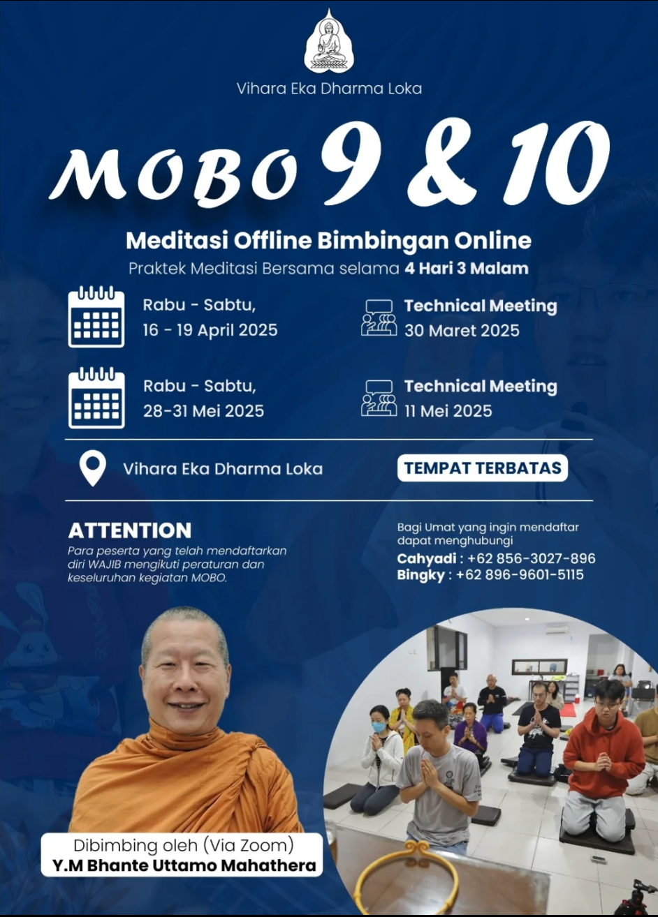 0 MOBO 10 – Surabaya Meditasi Offline Bimbingan Online (MOBO) Vihara Eka Dharma Loka, Surabaya 28 sd 31 Mei 2025